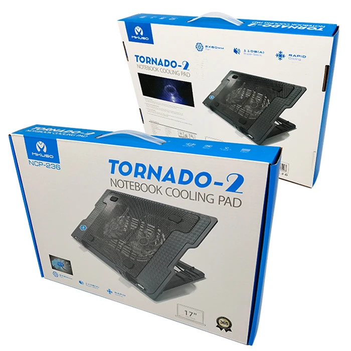 کول پد Mikuso Tornado-2 NCP-236 با طراحی ارگونومیک و دو فن ۸۰ میلیمتری، گزینهای مناسب برای خنکسازی مؤثر لپتاپها تا سایز ۱۷ اینچ است. این کول پد با قابلیت تنظیم ارتفاع در ۵ زاویه مختلف، تجربه کاربری راحتتری را فراهم میکند. فنهای کمصدا و نورپردازی LED آبی، علاوه بر عملکرد خنککنندگی، جلوهای زیبا به محیط کار میبخشند. اتصال USB و بدنه فلزی مشبک، به افزایش جریان هوا و کاهش دمای لپتاپ کمک میکند.