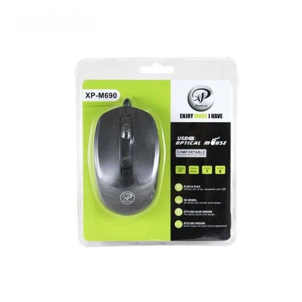 موس XP M690H ارزانقیمت و کاربردی است. بدنهی ساده و سبک آن برای استفادههای عمومی مناسب است. حسگر اپتیکال آن در DPI ~۸۰۰ دقت دارد و برای کارهای روزمره کافی است. کابل USB با روکش پلاستیکی و طول ۱.۲ متر برای اتصال راحت طراحی شده. بدون نورپردازی، ۳ کلید استاندارد دارد، وزن کم و طراحی متقارن آن گزینهای اقتصادی و بیدردسر برای مصارف خانگی و اداریست.