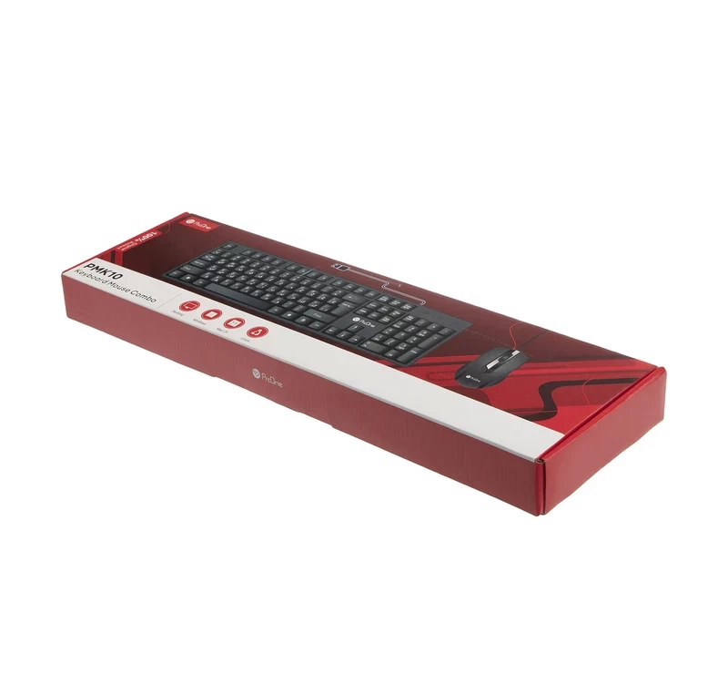 این پکیج ProOne PMK10 ترکیبی خوشقیمت و کاربردی از کیبورد و موس سیمی است. کیبورد ۱۰۴ کلیده با کلیدهای مقاوم (تا ۵ میلیون کلیک) و حک لیزری فارسی دارد .موس همراه دارای حسگر اپتیکال ۱۰۰۰–۱۶۰۰ DPI و طول کابل ۱.۵ m است . ابعاد کیبورد ~470×155×20 mm و وزن ~430 g است که برای استفاده روزمره مناسب است